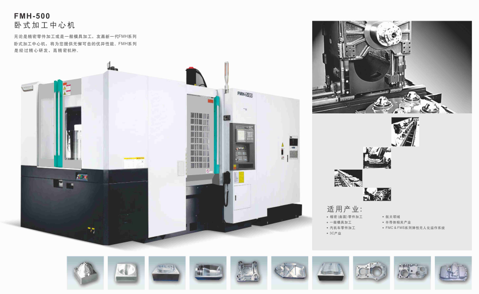 無(wú)論是精密零件加工或是一般模具加工,友嘉新一代FMH系列臥式加工中心機(jī),將為您提供無(wú)懈可擊的優(yōu)異性能。FMH系列是經(jīng)過(guò)精心研發(fā),高精密機(jī)種。